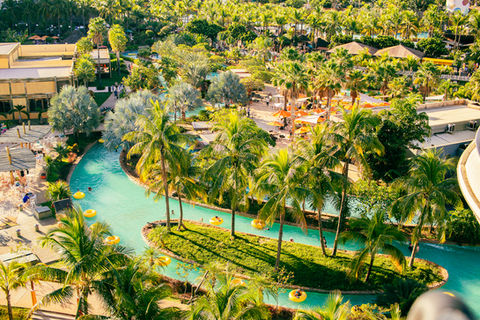 Praias artificiais com onda, espaço kids, rio lento, toboáguas e muito mais, em um ambiente único. Piscinas de águas quentes e muita diversão também não podem faltar. O complexo do parque ainda conta estrutura completa e dois resorts pé na areia com portaria exclusiva para os hóspedes. É mais lazer e tranquilidade para sua família se divertir.