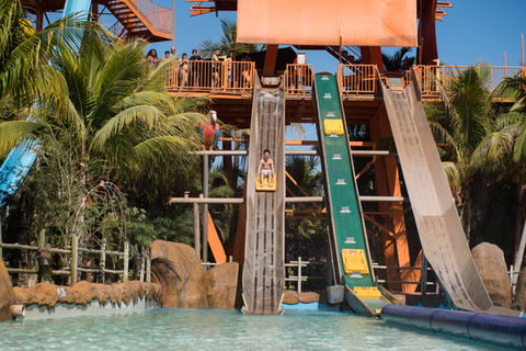A montanha russa aquática, com 370 metros de extensão, é a primeira do Brasil e o gigante Lendário é o maior complexo de toboáguas do país, com pistas onde você perde o chão a 28 metros de altura e pode alcançar velocidades que ultrapassam os 70 km por hora.
